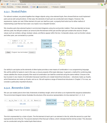 Dicha herramienta además la usan prestigiosas universidades para la educación de sus alumnos. Puedes incluso incrustar en tu web o compartir con otros, la visualización de cierto estado de la ejecución de programa, muy bueno para aquellos que deis clases de programación o escribáis textos técnicos. Por último, ofrece 2 versiones de python: 2.7 y 3.2.